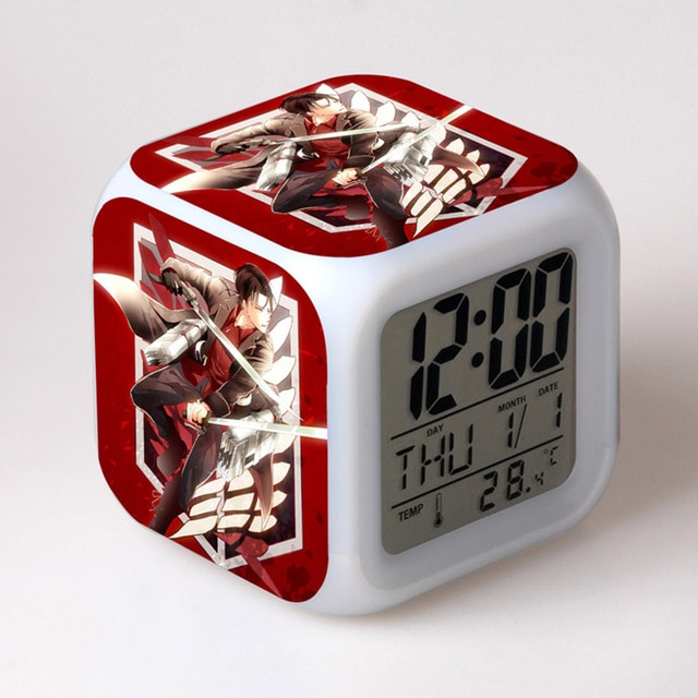 2 reviews for Attack On Titan Clock Merch – Levi Ackerman Suit 7 Colors Change Touch Light Alarm Clock