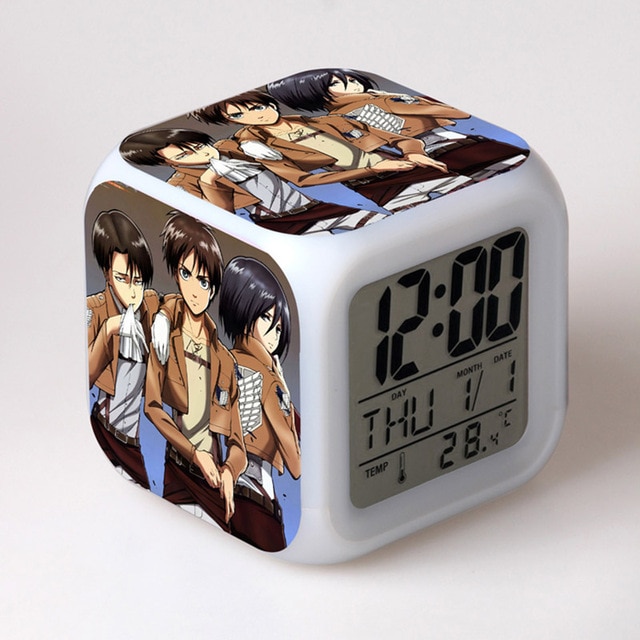 2 reviews for Attack On Titan Clock Merch – Levi, Eren And Mikasa 7 Colors Change Touch Light Alarm Clock